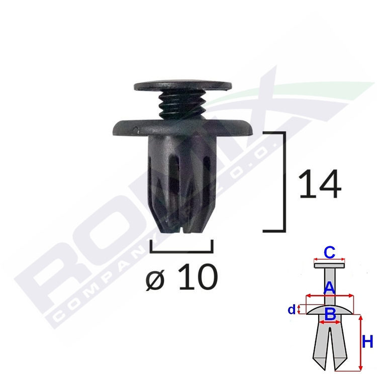 A 20 B 9,8 C 14 d 2,3 H 14 w otwór ø 10