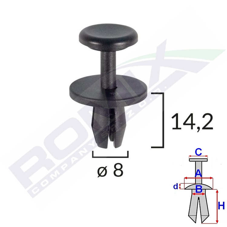 A 20 B 8 C 15 d 2 H 14,2 w otwór ø 8
