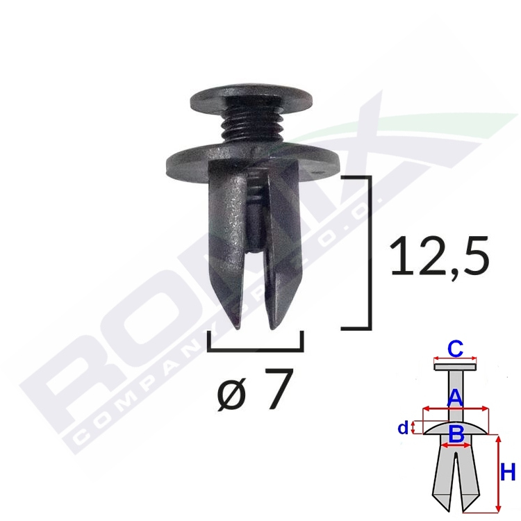 Wymiary: A 13,9 B 7,2 C 9,8 d 1,7 H 12,5 w otwór ø 7