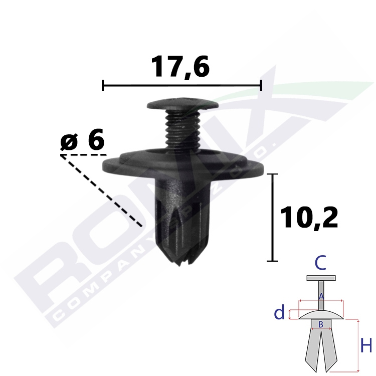 A 17,6 B 6 C 7,8 d 1,9 H 10,2 w otwór ø 6