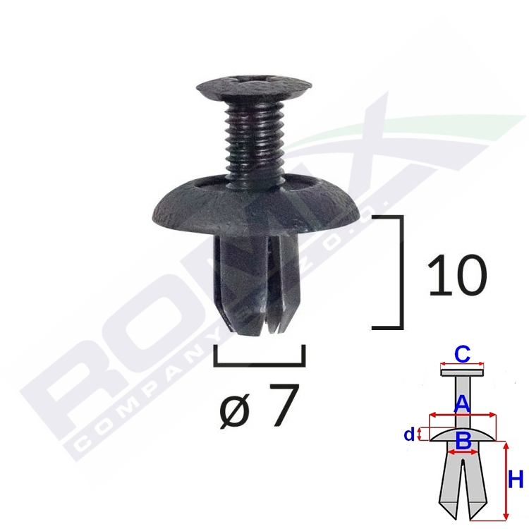 A 17,3 B 6,9 C 9,5 d 3 H 10 w otwór ø 7