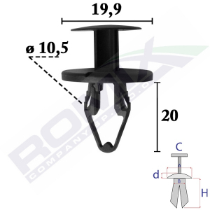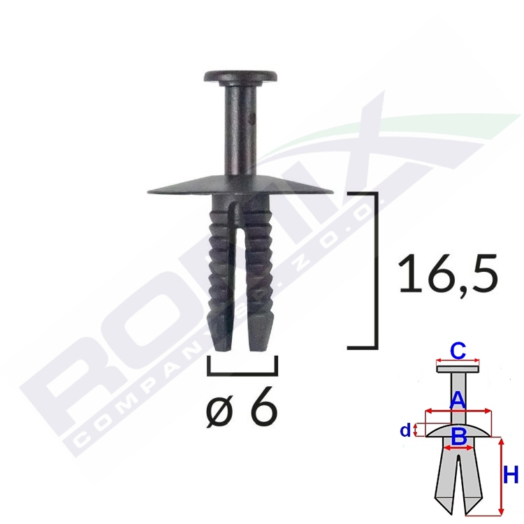 A 19 B 5,7 C 7,9 d 1,7 H 16,5 w otwór ø 6