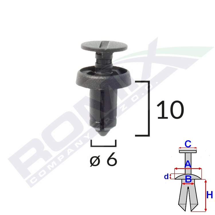 A 11,8 B 6,1 C 10,1 d 2,7 H 10 w otwór ø 6