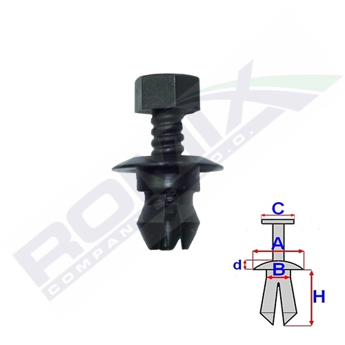 A 15 B 8,5 C 8 d 1,8 H 10,6 w otwór ø 8,5