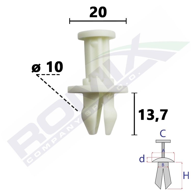 A 20 B 10 C 12,4 d 2 H 13,7 w otwór ø 10