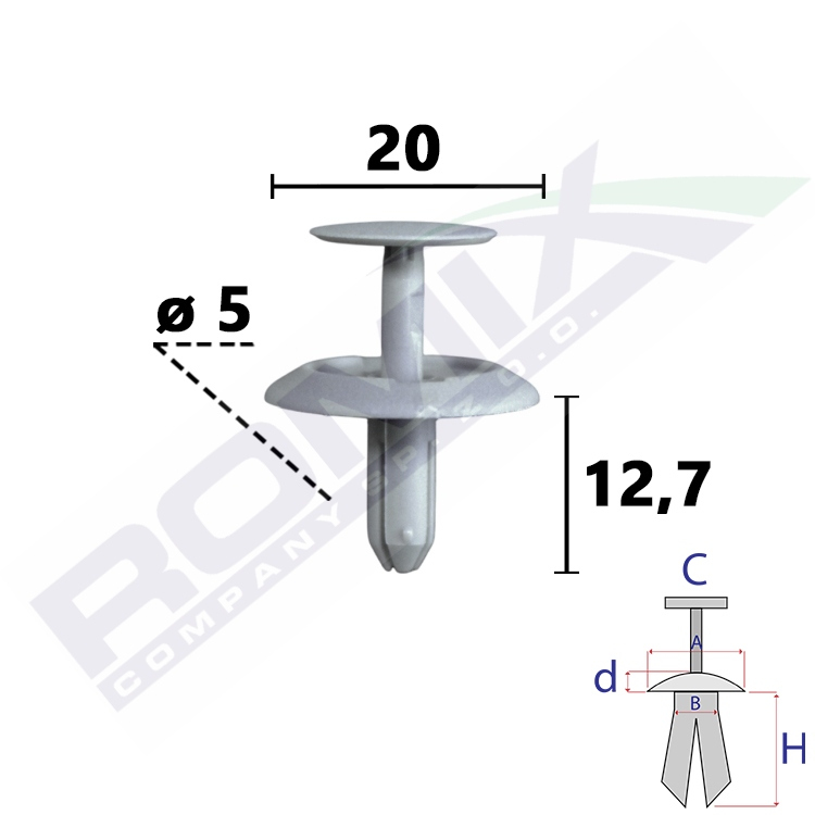 A 20 B 5 C 13,5 d 2,4 H 12,7 w otwór ø 5