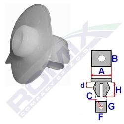 Wymiary: A 27,7 B 20,5 C 4,8 d 4,8 H 14 F 6,5 G 11,2