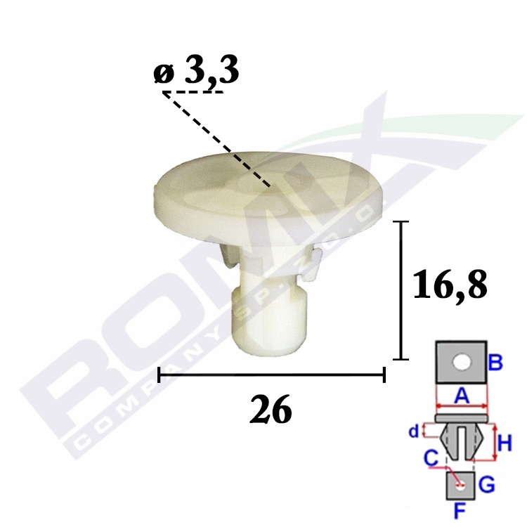 Wymiary: A 26 C 3,3 F 8,9 G 9 H 16,8