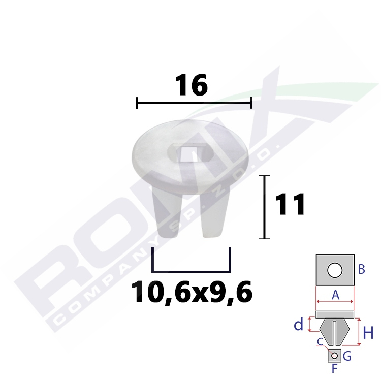 A 16 C 5,6x4,4 F 10,6 G 9,6 H 11 na wkręt 5
