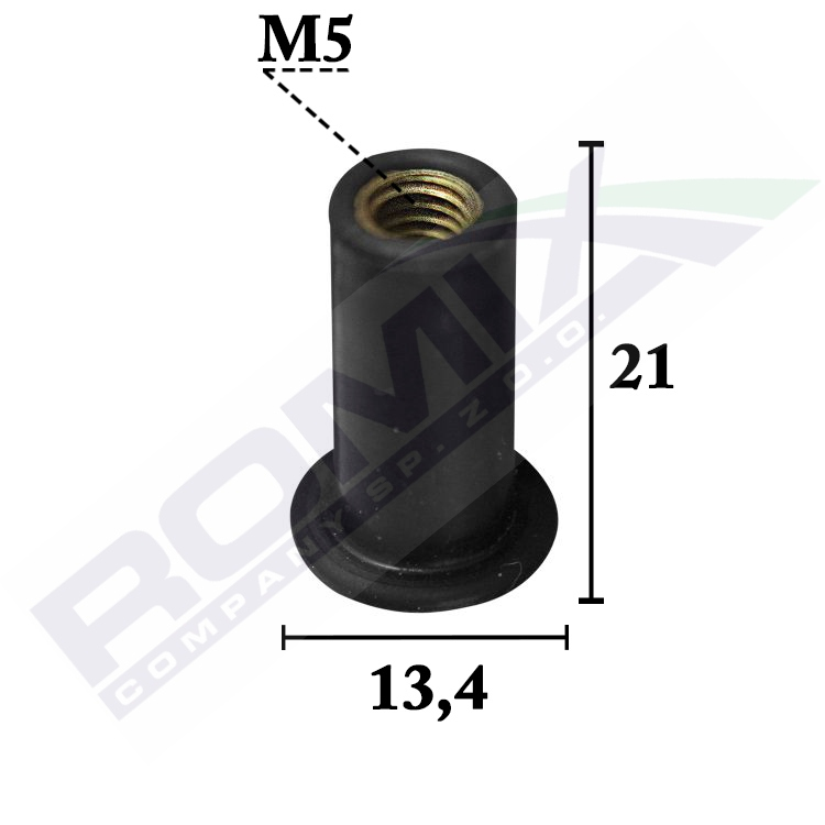 wysokość - 21 średnica zewnętrzna - 9,4 średnica podstawy - 13,4 gwint M5