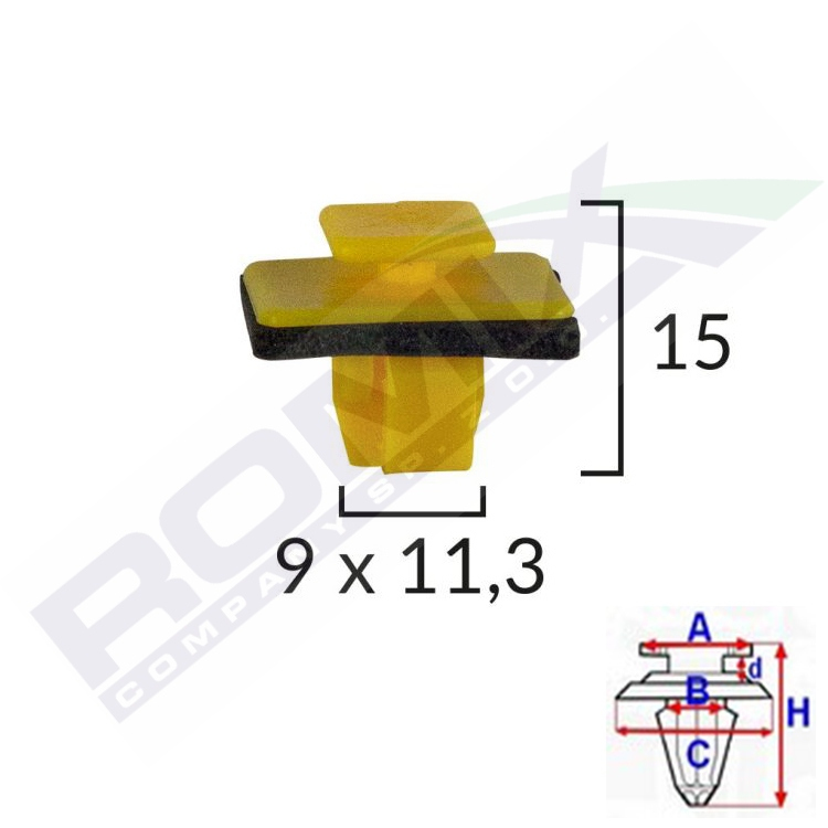 Wymiary: A 10x11 B 9x11,3 C 13,5 d 2,5 H 15