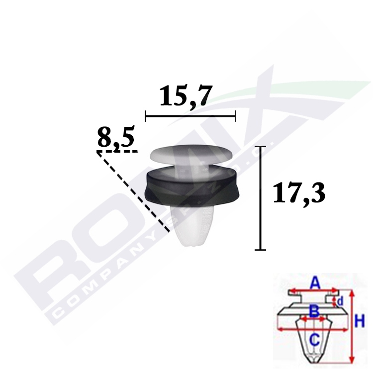 Wymiary: A 14,5 B 8,5 C 15,7 d 2,7 H 17,3