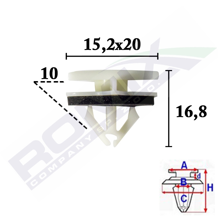 A 13,7x19,9 B 10 C 15,2x20 d 2,6 H 16,8