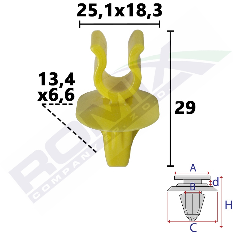 Wymiary: B13,4X6,6 C 25,1x18,3 H 29 na pręt 6,5