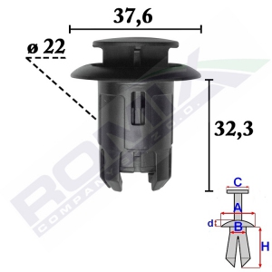 A 22,2 B 6 C 7,9 d 4,9 H 24,9 w otwór ø 7