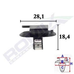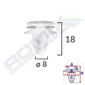 A 12,6 B 7,3 C 16,8 d 2,9 H 18,2 w otwór ø 8