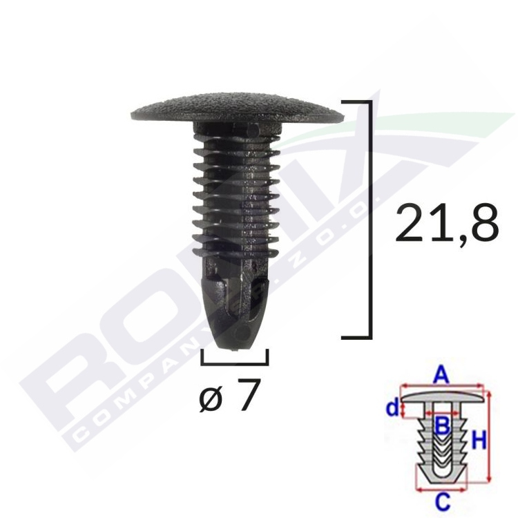 A 17,9 B 5,2 C 7,8 d 1,8 H 21,8 w otwór ø 7