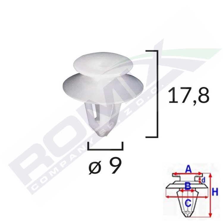 A 13,2 B 8,2 C 17,7 d 2,5 H 17,8 w otwór ø 9