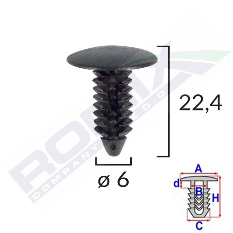 A 17,7 B 5,3 C 7,3 d 3 H 22,4 w otwór ø 6