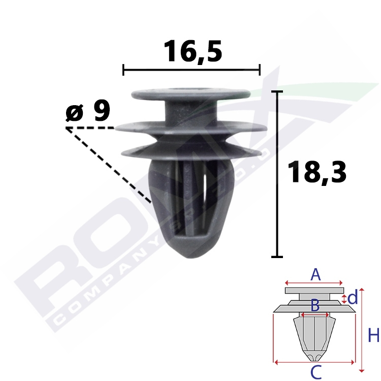A 13 B 8,4 C 16,5 d 2,6 H 18,3 w otwór ø 9