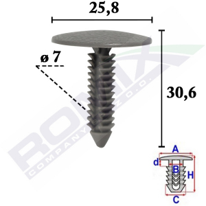 A 25,4 B 4,6 C 7,5 d 2,1 H 29,8 w otwór ø 6