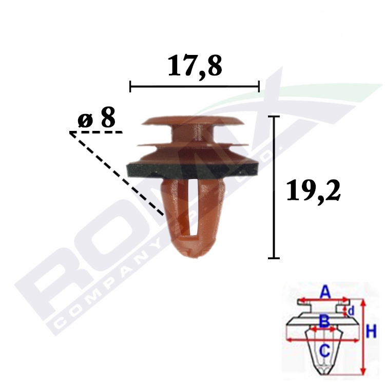 Wymiary: A 14,2 B 7,8 C 17,8 d 2,6 H 19,2 w otwór ø 8