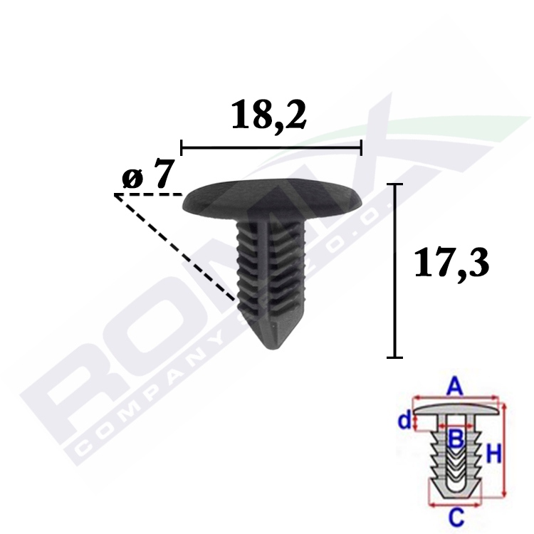 A18,2 B 6,8 C 6,8 d 2,4 H 17,3 w otwór ø 7