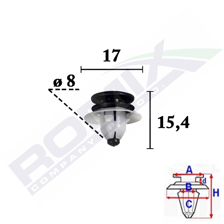 A 13 B 8 C 17 d 2 H 15,4 w otwór ø 8