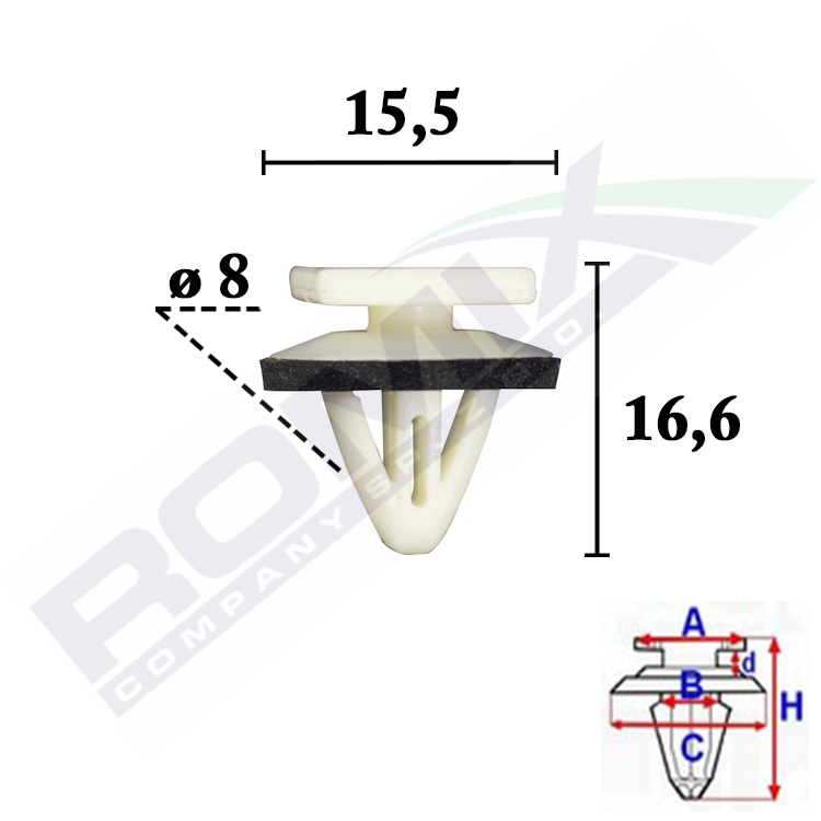 A 14,1x12,3 B 8,1 C 15,5 d 2 H 16,6 w otwór ø 8