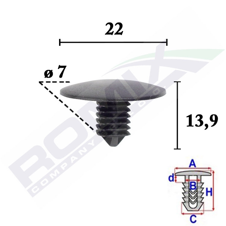 A 22 B 5,6 C 6,7 d 3,3 H 13,9 w otwór ø 7