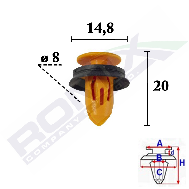 A 12,9 B 8,1 C 14,8 d 2,8 H 20 w otwór ø 8