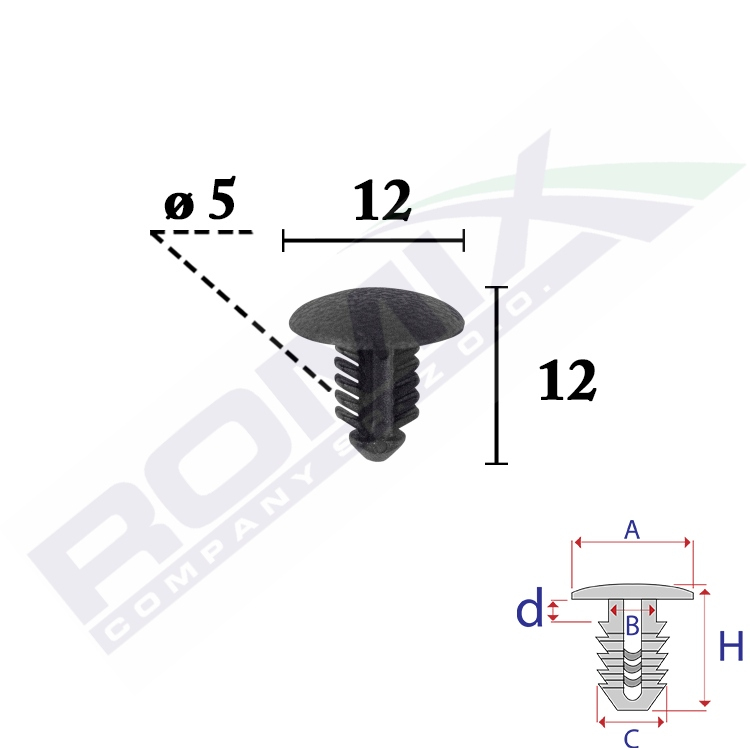 A 12 B 4,8 C 6,2 H 12 w otwór ø 5