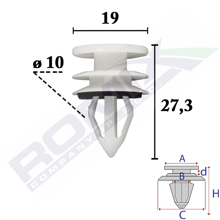 A 18,9 B 8,8 C 19 d 4,2 H 27,3 w otwór ø 10