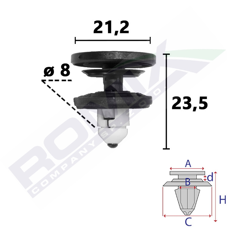 A 21,2 B 7,8 C 19,3 d 4,4 H 23,5 w otwór ø 8