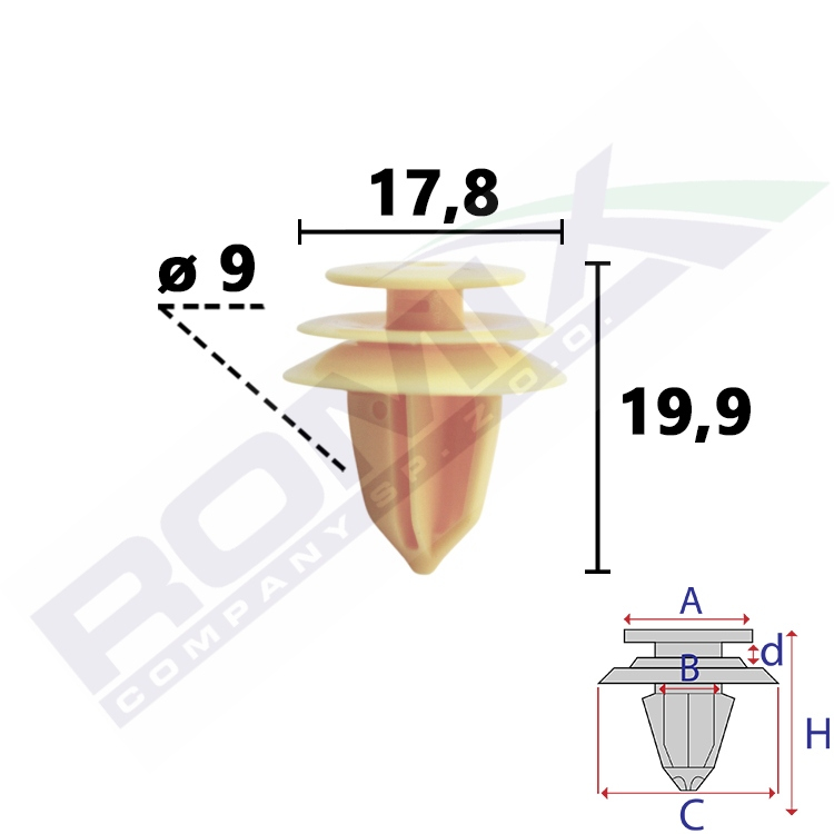 Wymiary: A 12,6 B 8,5 C 17,8 d 2,6 H 19,9