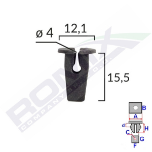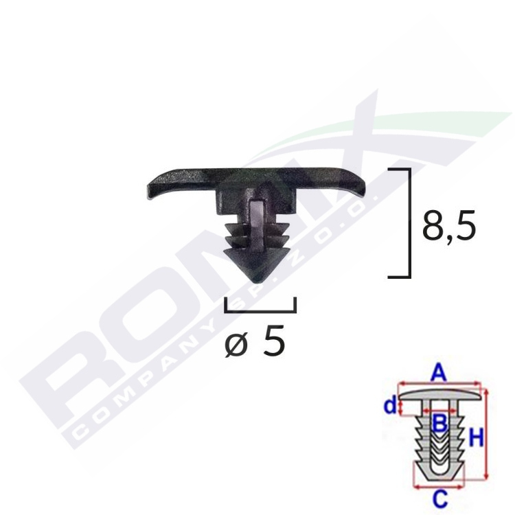 A 17,1x5,6 B 5 C 6,3 H 8,5, w śr.otworu 5