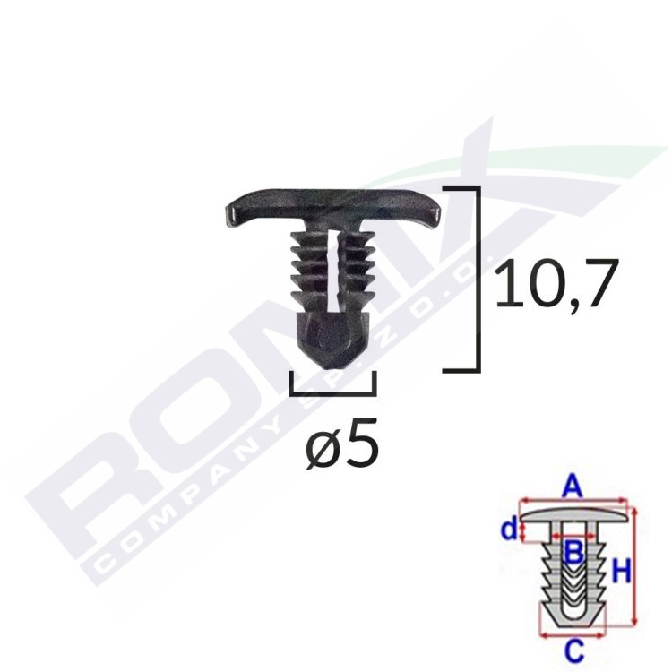Wymiary: A 12,7x5,1 B 4 C 5 H 10,7, w śr.otworu 5