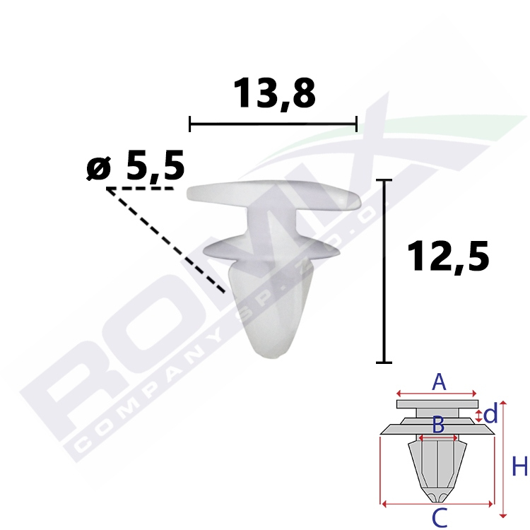 A 13,8x6,3 B 5,9 C 9,4 H 12,5 w otwór ø 5,5