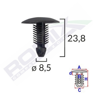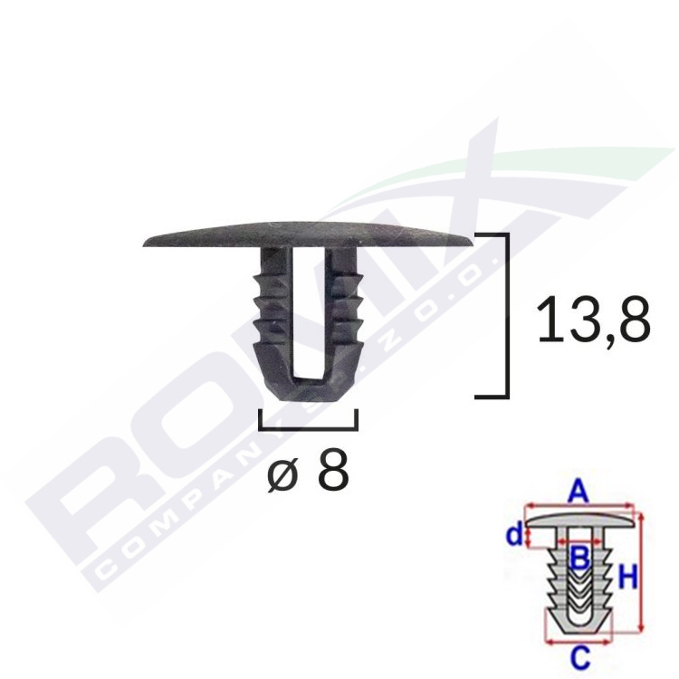A 25,4 B 8 C 9,3 d 3,1 H 13,8, w śr.otworu 8