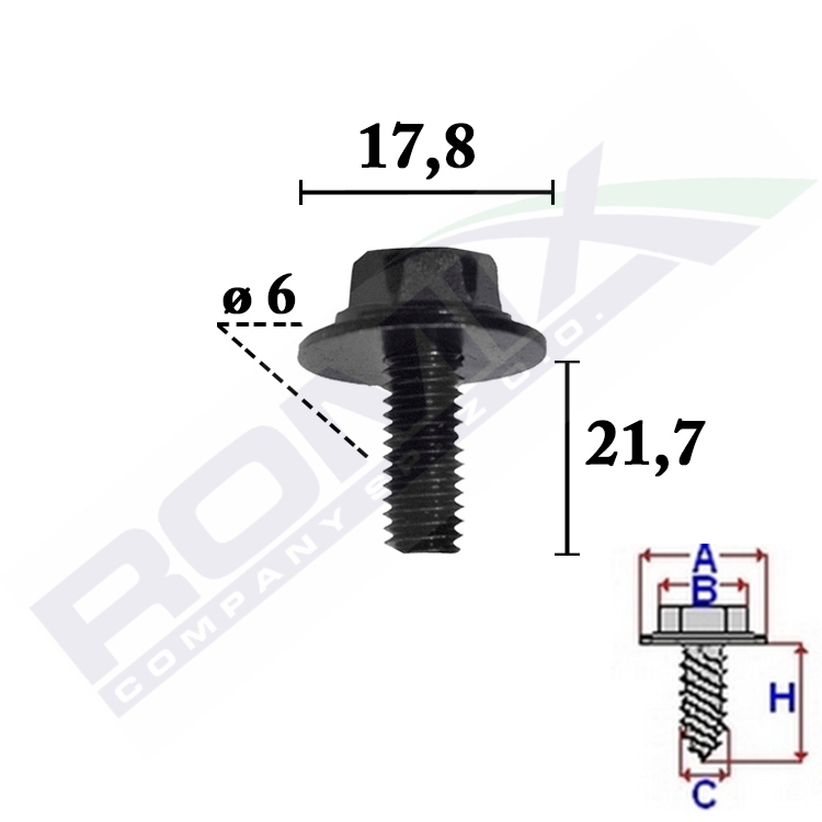 A 17,8 B 10 C 6 H 21,7 śruba M6