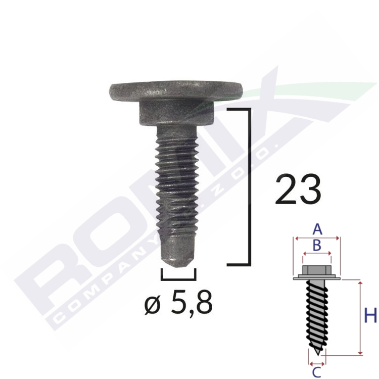 Wymiary: A 18,1 B 5,3 C 5,8 H 23