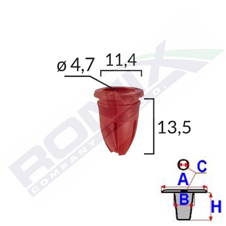 A 11,4 B 8,8 C 4,7 H 13,5 ø 8,7