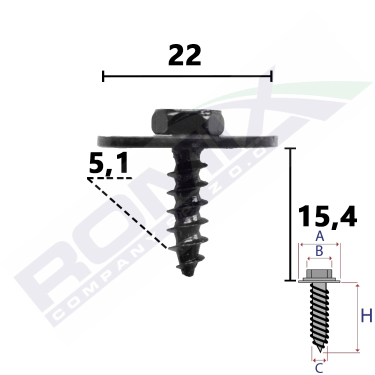 Wymiary: A 22 B 7,9 C 5,1 H 15,4